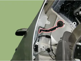 Remove the head lamp washer motor (A) after disconnect the head lamp washer motor connector (A).
