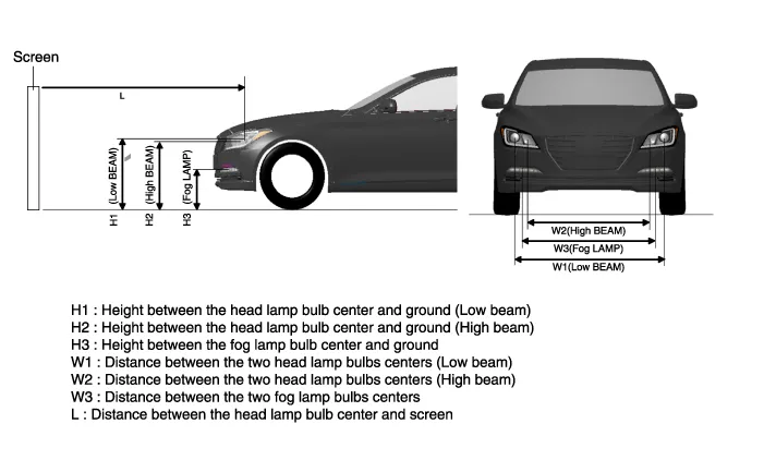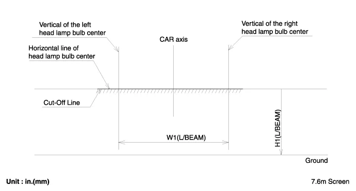 respective head lamp centers) and a horizontal line (Horizontal line