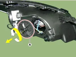 Remove the bulb caps from the head lamp assembly after turning in the counter clock-wise direction.