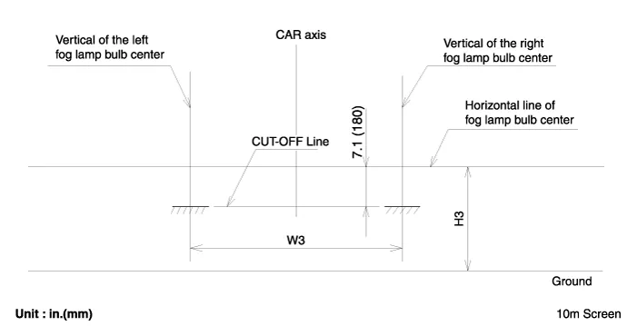 With the front fog lamp turned on, adjust the cut-off line to be located as shown in the picture below.