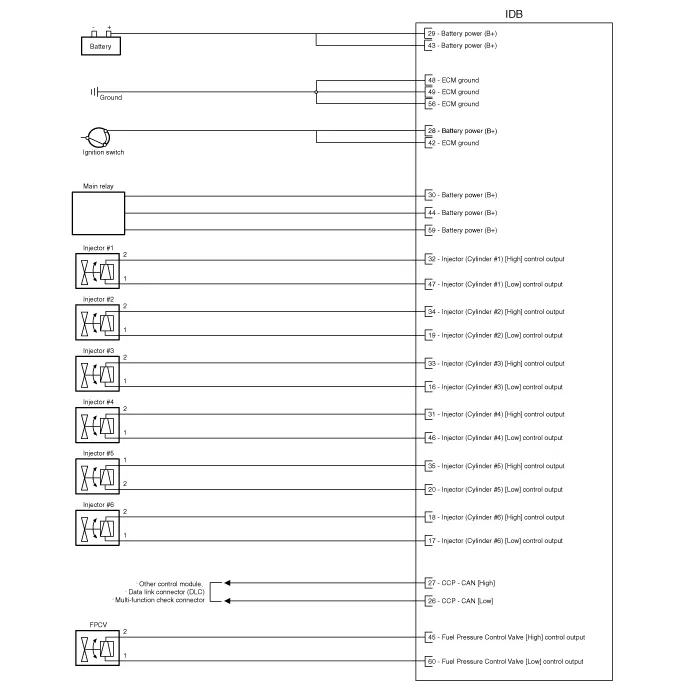 | 40 | Injector (Cylinder #6) signal input | Engine Control Module (ECM) |