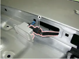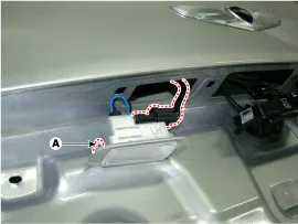 Remove the license lamp assembly after disconnecting the license connector (A).