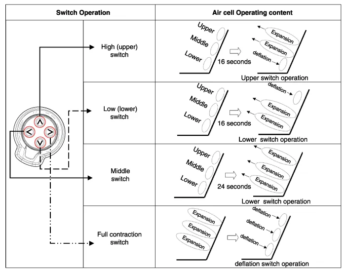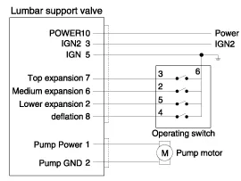 After supplying power to the air pump and voltage to each switch, check the air lumbar support for normal operation.