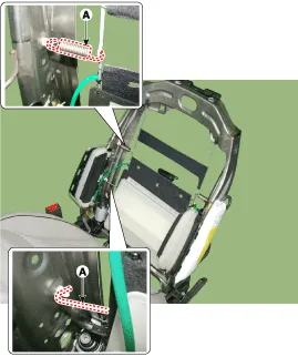 Remove the Front seat back (A) after loosening the mounting clip.