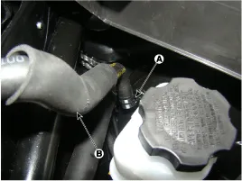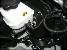 Remove the clip (A) and then disconnect brake fluid level switch connector (B).