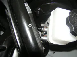 Loosen the hose connecting bolt (A) and disconnect the brake tube.