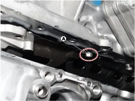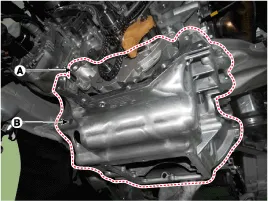 After loosening the oil pump mounting bolt, remove the oil pump (A) and upper oil pan together.