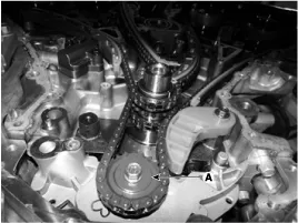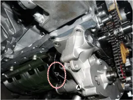 Remove the bolt (A) and then separate the chain with sprocket from the oil pump.