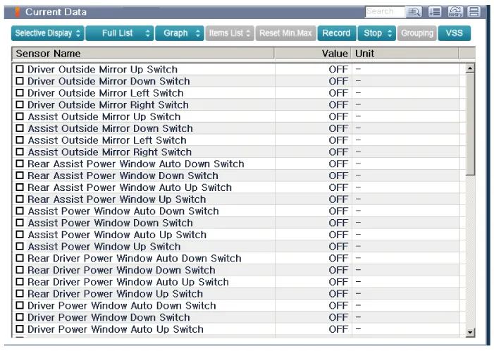 The input/output data for the sensors corresponding to the driver seat or assistant door module(DDM/ADM) can be checked.