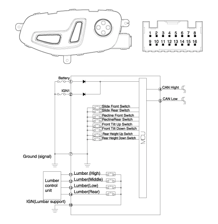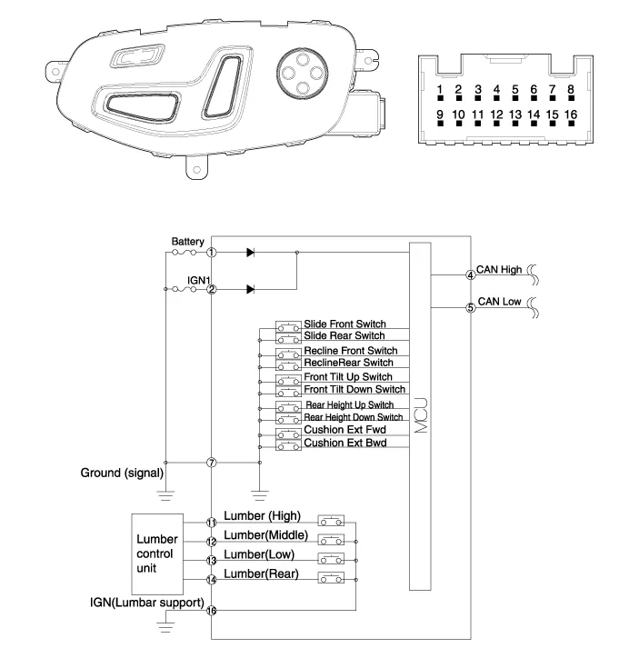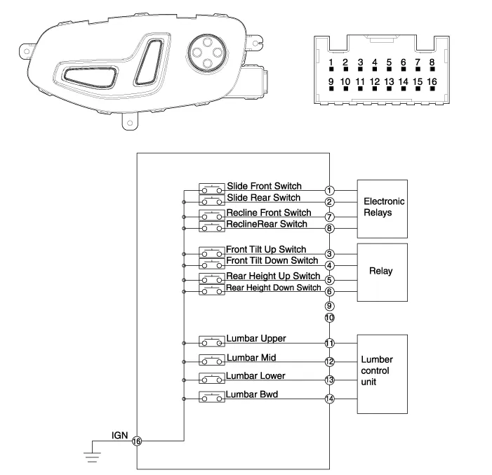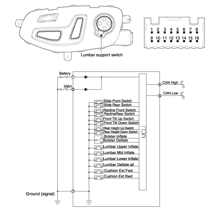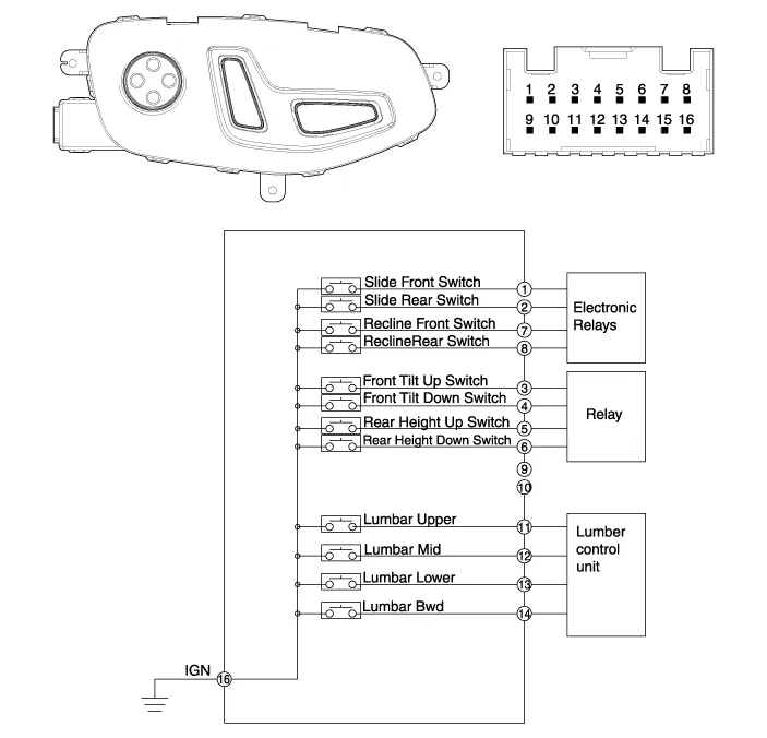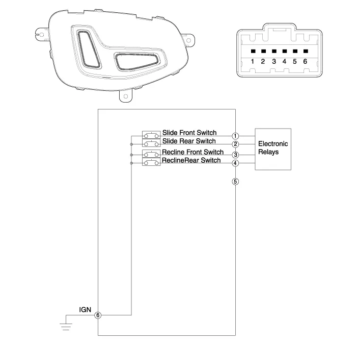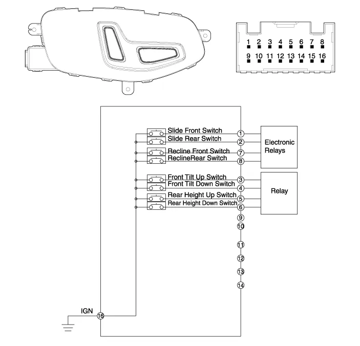 Inspection 1. Power seat switch sends/receives signals via CAN communication so it is impossible to check the electric current of switch components.