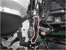 Disconnect the radiator upper hose (A) and lower hose (B).