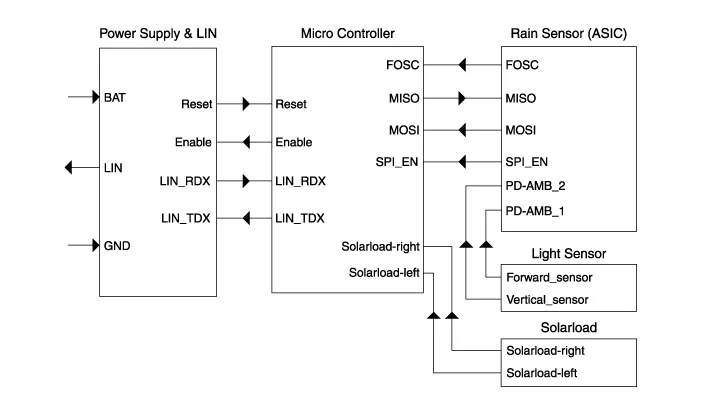 Components and Components Location 1. Horizontal light sensor2. Vertical light sensor3. Solar load sensor4. Rain sensor - left5. Rain sensor - right
