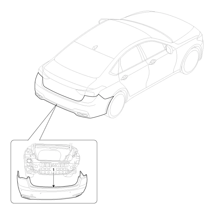 Components 1. Rear bumper cover2. Rear bumper side bracket [LH]3. Rear bumper side bracket [RH]