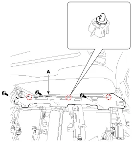 Remove the rear curtain (A) after disconnecting the connector and rear curtain mounting nuts.