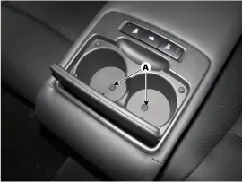 Using a screwdriver or remover, remove the rear seat armrest drink holder assembly (A).