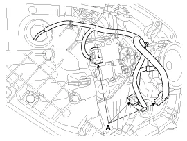 After loosening the mounting bolts and nuts, remove the rear door outside handle by pulling upward the rear door channel (A).