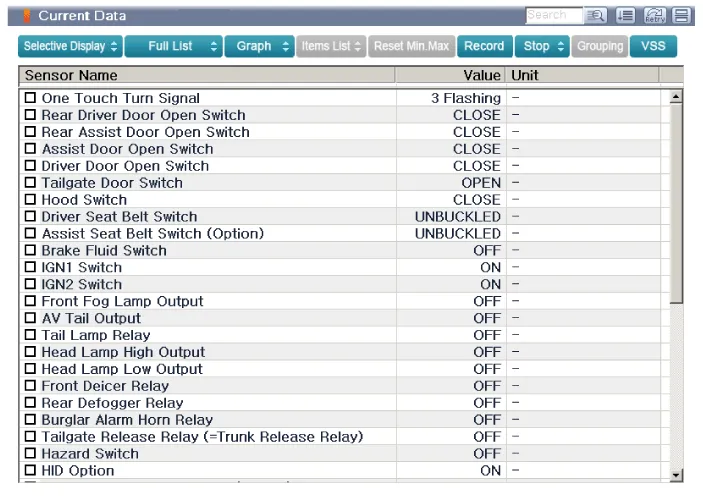 In the body electrical system, failure can be quickly diagnosed by using the vehicle diagnostic system (GDS).