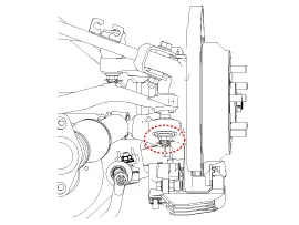 Disconnect the rear stabilizer link & height sensor (B) from the rear lower arm by loosening the nut (A).