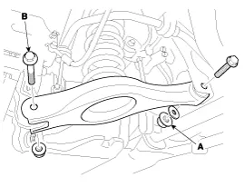 Loosen the mounting bolt & nut (A, B) and then remove the rear lower arm.