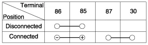 terminals, check that there is no continuity between No. 30 and 87