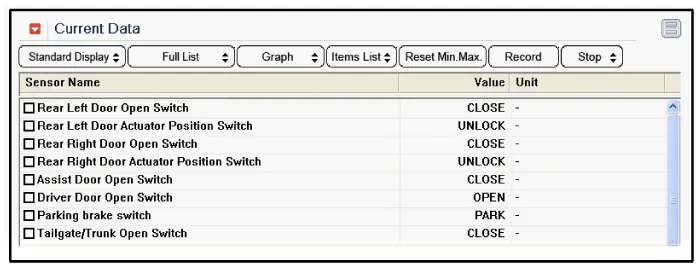 To consult the present input/out value of SJB, "Current DATA". It provides information of SJB input/output conditions.
