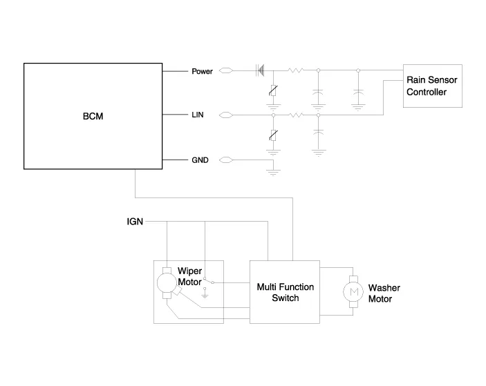 Description Integrated Rain Sensor Integrated rain sensor (A) controls three systems: front wiper, auto-light, and central air conditioner. 1. Wiper Control System When "AUTO" switch signal is received from the multi-function switch on the right, the integrated rain sensor detects the amount of rainfall.