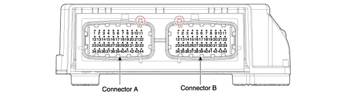 | 39 | Front impact sensor-Driver-High (+) | 39 | Pressure side impact sensor-Driver-Low (-) |