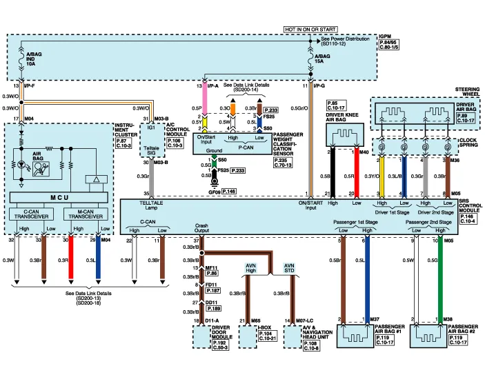 | 10 | Passenger airbag 2nd stage - High (+) | 10 | Side airbag-Front,Driver-Low (+) |