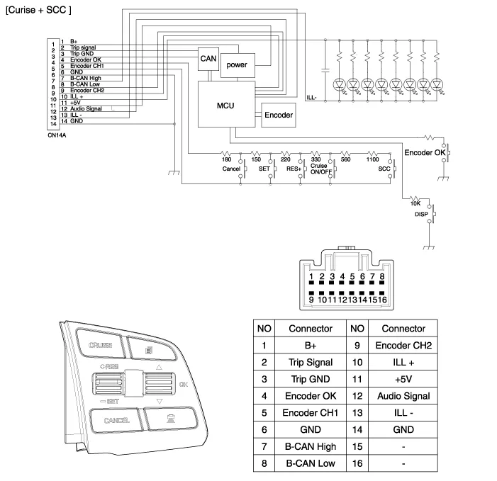 Components 1. SET - switch2. RES + switch3. SCC switch4. CANCEL switch5. CRUISE switch