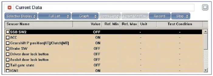 You can see the situation of each switch on scanner after connecting the "current data" process.