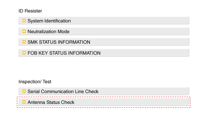 If the smart key runs normal , the related antenna, smart key(transmission, reception) and exterior receiver are normal. |