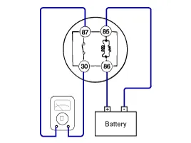 Apply 12V to between terminals 85 and 86, and then check for continuity between terminals 30 and 87.
