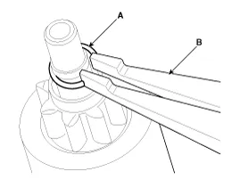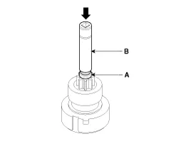 Press the stop ring (A) using a socket (B).