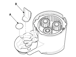 Disconnect the planet shaft assembly (A) and lever (B).