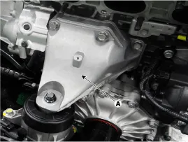 Remove the engine support bracket (A) after loosening the install bolt and nut.