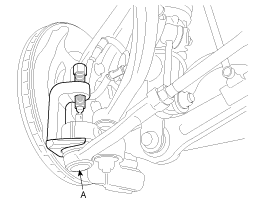 Disconnect the ball joint (A) from knuckle (B) using the special tool (09568-2J100).