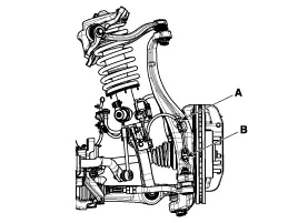 Remove the wheel speed sensor by loosening the wheel speed sensor bracket bolt (A) and wheel speed sensor mounting bolt (B).