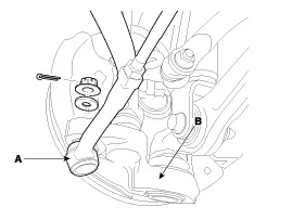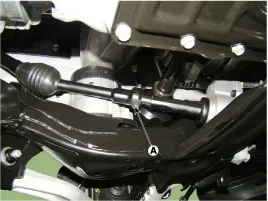 Unscrew the steering universal joint bolt (A) to disconnect the universal joint assembly from the steering gear box.