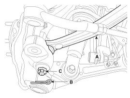 Loosen the wheel speed sensor bracket bolt and then disconnect the wheel speed sensor connector(A).