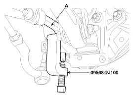 Remove the tension arm (A) from the knuckle by using the SST (09568-2J100).