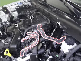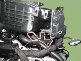 Remove the throttle body Cooling hose (A), PCSV hose (B).