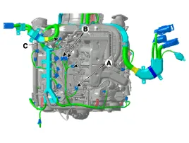 Disconnect the VIS connector (A), Condenser connector (B), MAP sensor connector (C).