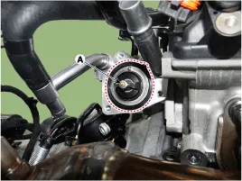 Remove the coolant inlet fitting (A).