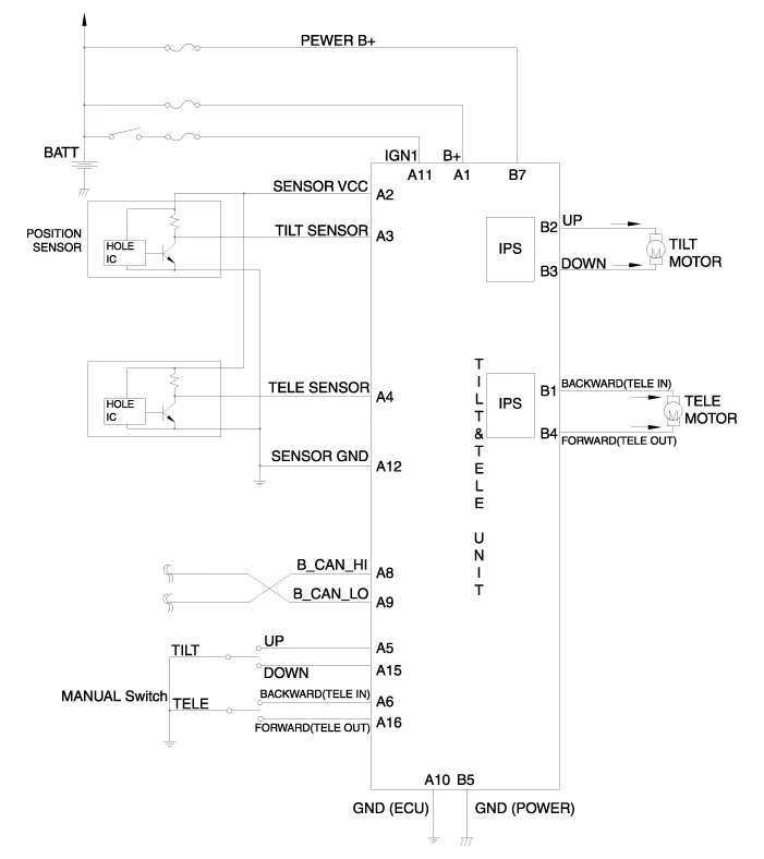 Hyundai Genesis (DH): IMS(Integrated Memory System) / Tilt & Telescope Control (SCM) Schematic Diagrams