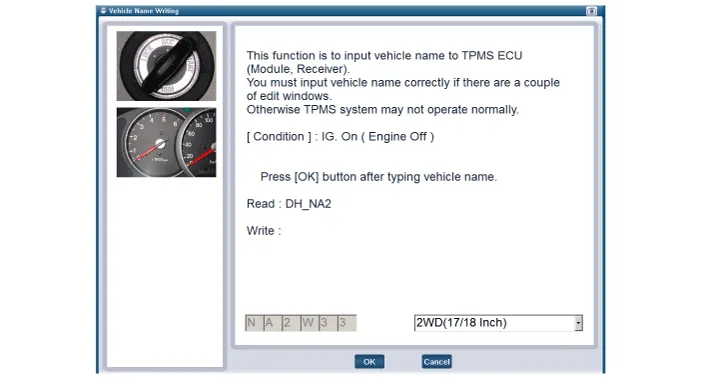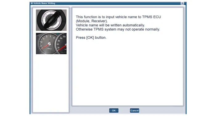 In the GDS Vehicle Type Selection menu, select "Vehicle Type" and "TPMS" System, and then opt for "OK." |