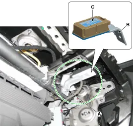 Remove the bracket (B) and receiver (C) by loosening the nut (A).