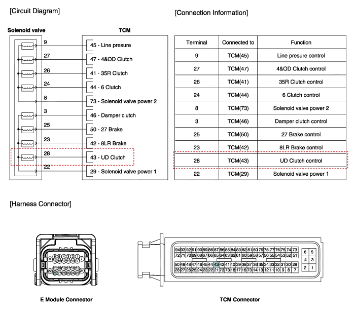 Inspection 1. Turn ignition switch OFF. 2. Disconnect the E Module connector. 3. Measure resistance between solenoid valve terminals. 4.